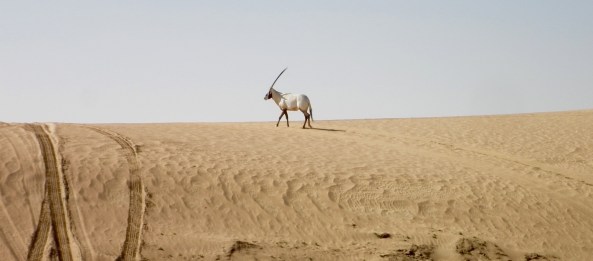 Travelling across the desert in the Al Gharbia western region of the UAE, from White Sands to Liwa, the landscape is almost devoid of life. Occasionally small bushes break through the sand, a welcome sight contrasting to the ochre hues in this spare landscape. Not too many camels this far out into the desert either, but I did find a mother and baby….