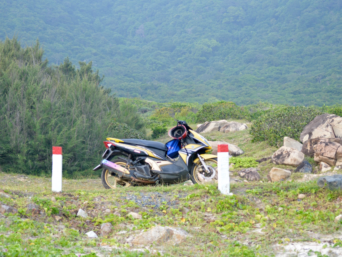 Con Dao camping was my choice (I wasn’t feeling uber enough financially for the luxury SixS’s). A short taxi ride on the island road to town was an introduction to the idyllic scenery of the archipelago. The road has been carved around the steep mountains for access to Con Son, the town and the fishing port at the far end of the island.